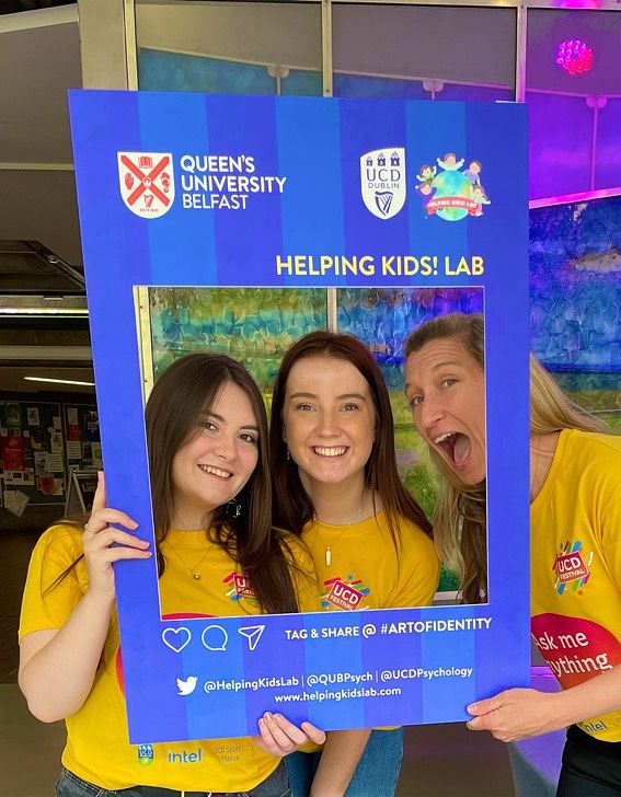 The Helping Kids! Lab at the UCD Science Festival, 2022. Left to right: Isabelle Nic Craith, Dearbháile Counihan and Laura K. Taylor.